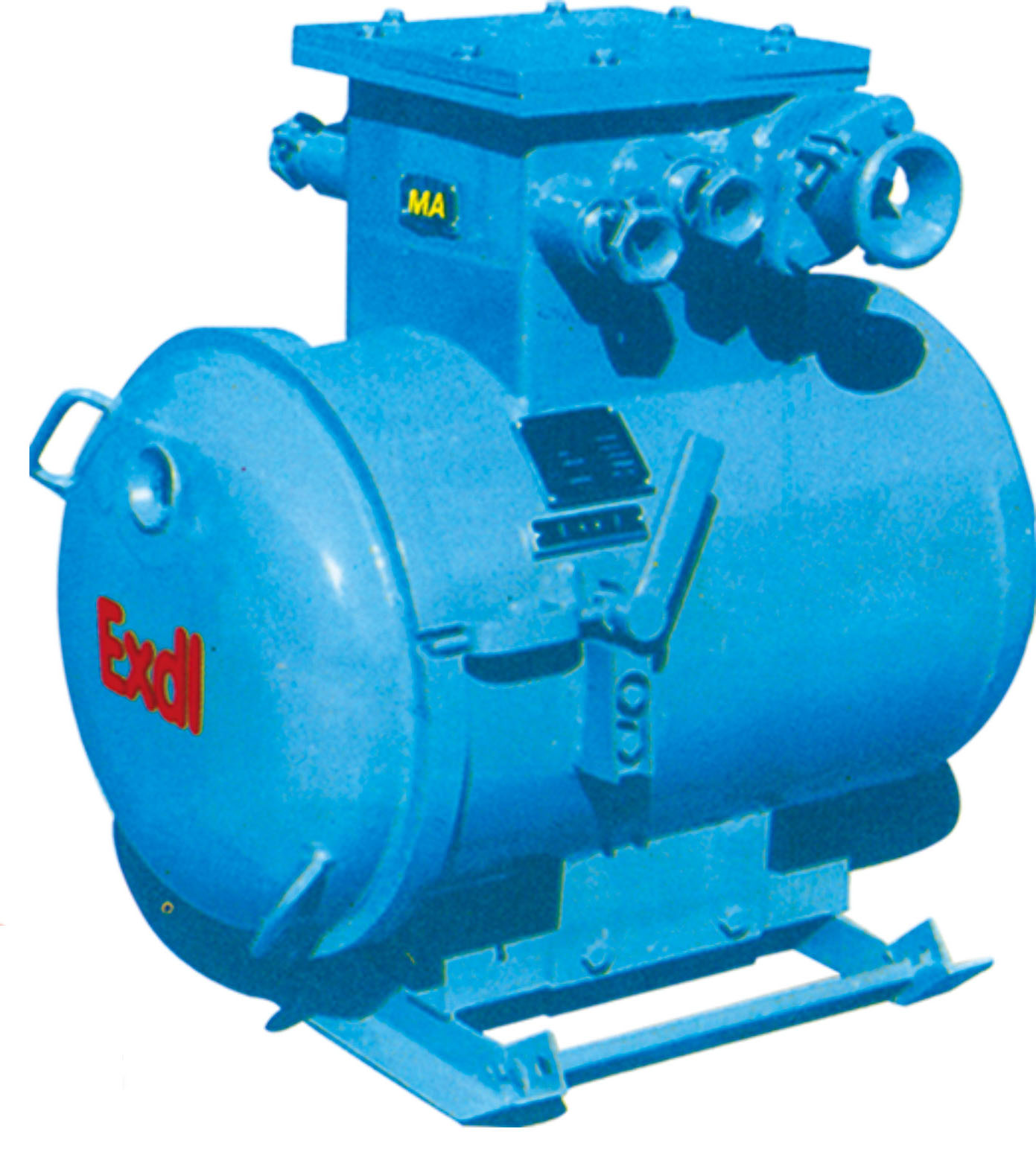 綜合裝置主要由隔爆外殼、干式變壓器、無觸點機(jī)芯三部分組成。隔爆外殼為圓筒型,具有凸出的底和蓋,殼蓋與殼身采用轉(zhuǎn)蓋止口結(jié)構(gòu), 開啟方便。外殼上部有一接線箱作為引進(jìn)和引出的電纜用.外殼右側(cè)裝有操作隔離開關(guān)的手柄和檢查短路、漏電保護(hù)的試驗按鈕,并有可靠的機(jī)械聯(lián)鎖裝置,殼蓋上方有觀察窗,可以從外面觀察指示燈狀態(tài)。干式變壓器與機(jī)芯的聯(lián)結(jié)采用端子板,檢修時機(jī)芯可獨立拿出。